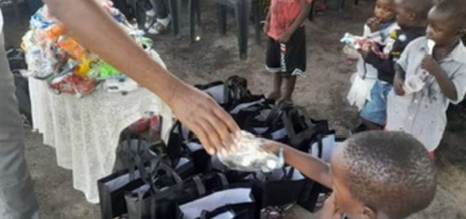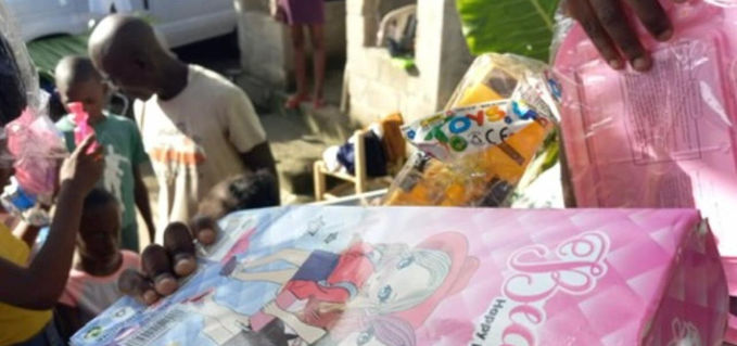 Regalando utiles escolares